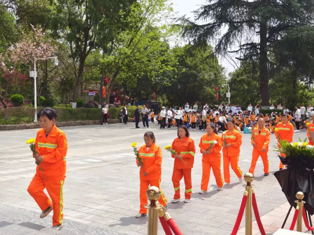 在烈士纪念碑前,全体职工庄严肃穆,致悼词,默哀、并向革命烈士纪念碑敬献花圈,表达了对革命先烈的沉痛哀思和崇高的敬意。