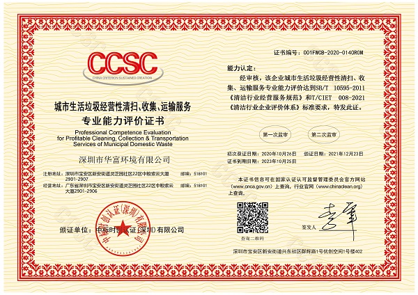 城市生活垃圾经营性清扫、收集、运输服务证书